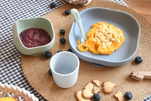 BEABA Zestaw 2 łyżeczek silikonowych w podróżnym etui 4 m+ Pebble / Cloud blue (stary indeks: 913468)