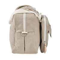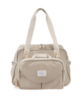 Niezwykle funkcjonalna i designerska torba dla mam francuskiej marki BEABA. Pomieścisz w niej bez trudu niezbędne dziecięce akcesoria i wygodnie je posegregujesz. Torba ma ciepły beżowy kolor oraz kremowe detale. To wszystko sprawia, że jest także doskonałym kobiecym dodatkiem. Bez trudu zapakujesz do niej również swoje rzeczy: telefon, długopisy czy klucze. Przy licznych przegródkach wewnętrznych znajdziesz metki, sugerujące ich zastosowanie.