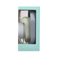 Zestaw utrzymany jest w pastelowych kolorach: talerzyk jest szary, miseczka jasnozielona, a kubeczek i łyżeczka – jasnoszare. Naczynia można myć ręcznie i w zmywarce, a także podgrzewać w mikrofalówce.