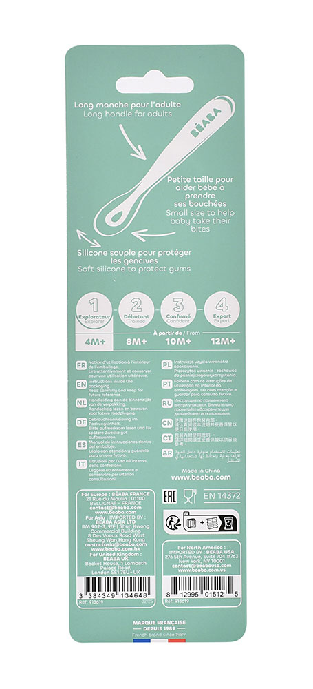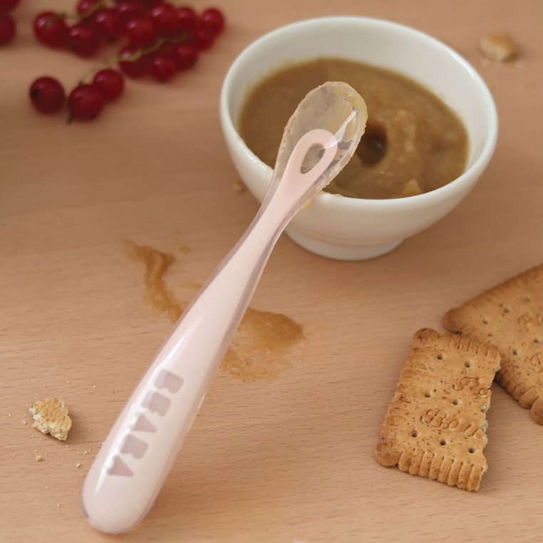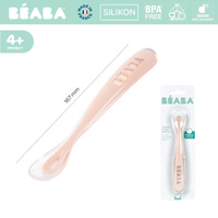 Ergonomiczna pierwsza łyżeczka dziecka francuskiej marki BEABA w jasnoróżowym kolorze, z transparentnymi brzegami. Miękka końcówka wykonana została z ultra elastycznego silikonu, w pełni bezpiecznego dla delikatnych dziąseł maluszka. Jej kształt zaprojektowano tak, by ułatwić dziecku przejście ze smoczka na łyżkę. Długi uchwyt sprawia, że łyżeczka świetnie sprawdza się podczas karmienia przez osobę dorosłą, a także nadaje się do podawania pokarmów ze słoiczka. Łyżeczkę łatwo utrzymać w czystości - można ją myć ręcznie lub w zmywarce.