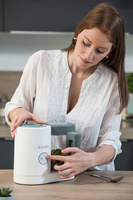 3. Ergonomiczny dzbanek z najwyższej jakości szkła z poręcznym uchwytem, umożliwiającym jednocześnie pełne otwarcie pokrywki jednym prostym ruchem (system „easy clip”) - to wygoda używania i gwarancja bezpiecznego oraz zdrowego podgrzewania lub rozmrażania, higienicznego i bezzapachowego, a także utrzymania przez dłuższy czas finalnej temperatury posiłku. Spora pojemność dzbanka – 1250 ml – pozwala na przygotowanie większej ilości posiłku na raz, np. obiadów na kilka dni z góry.